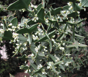 • Colletia paradoxa: um arbusto de lento crescimento, que chega a atingir bem mais de dois metros e vive em ambientes áridos. Apesar de seu aspecto agressivo, suas ramas achatadas têm uma linda coloração verde-gris. As flores são brancas, agrupadas nos fascículos axilares, com a corola tubiforme e com anteras negras muito perfumadas. Seu aspecto muito espinhoso torna-a perfeita para fazer cercas-vivas defensivas de propriedades que não desejam a entrada de intrusos, pois dispensam o uso de arames farpados. Corre o risco de se extinguir, já que vem perdendo seu habitat, em consequência de exóticas invasoras.