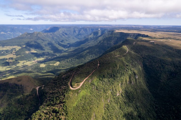 Serra e estrada do Faxinalzinho, nos Aparados da Serra, ligando os territórios de Cambará do Sul, (RS) e Praia Grande (SC).