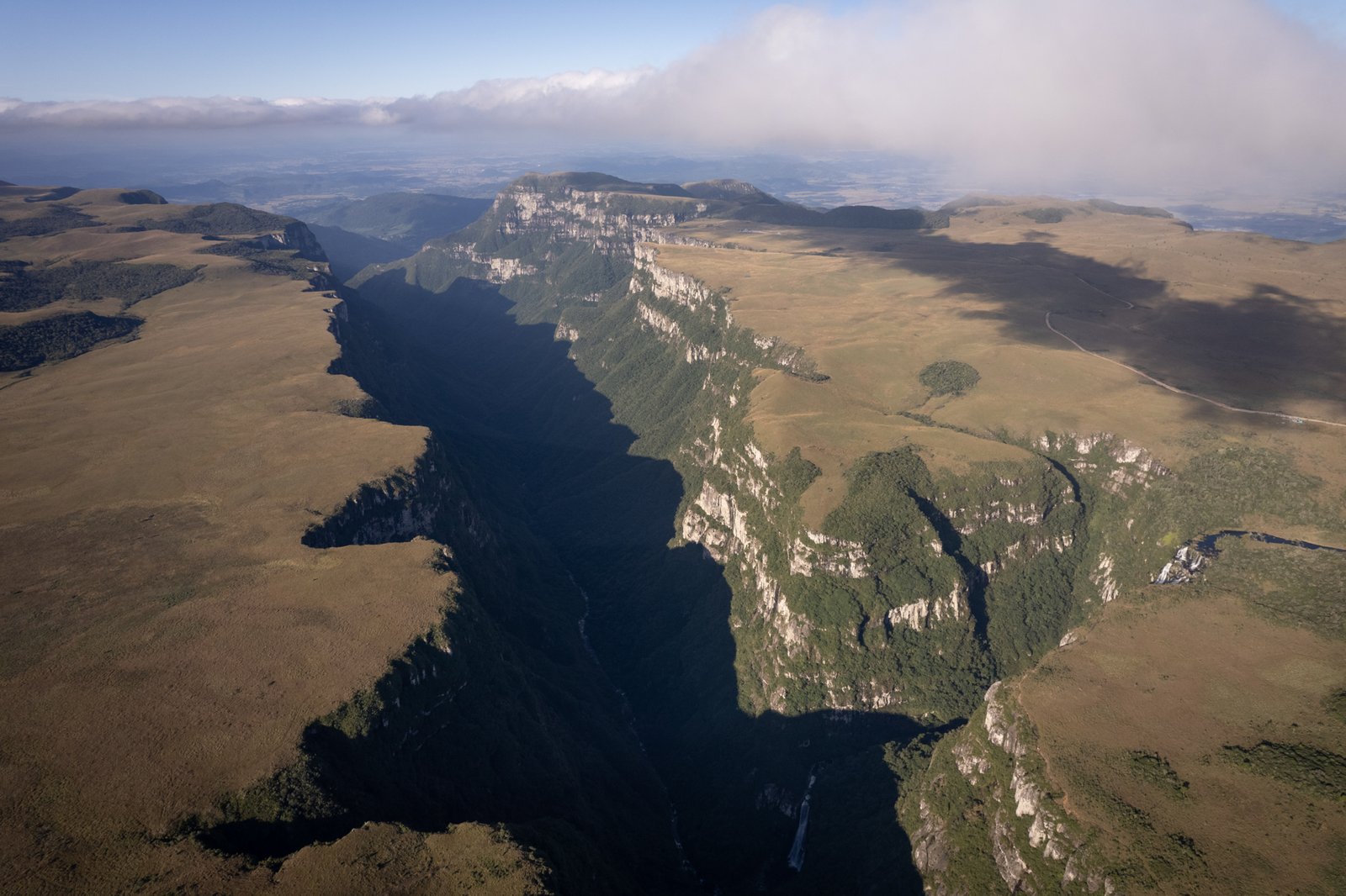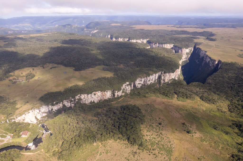 Visão aérea dos peraus da Fortaleza, Parque Nacional da Serra Geral. / Fotografias de Daniel Herrera