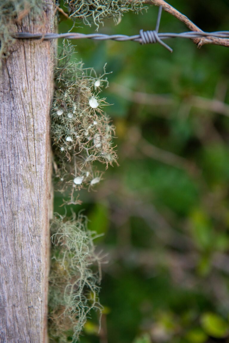 • Há dois líquens onipresentes na paisagem local, a um dos quais os gaúchos denominam barba-de-velho (Usnea barbata). Há outro, chamado barba-de-pau, de coloração sulfúrea e levemente esbranquiçada. Ambos se dependuram por árvores, cercas, mourões, arames farpados, conferido uma feição de abandono às paisagens, sem ostentar o ar lúgubre da região pantanosa de Everglades, na Flórida.