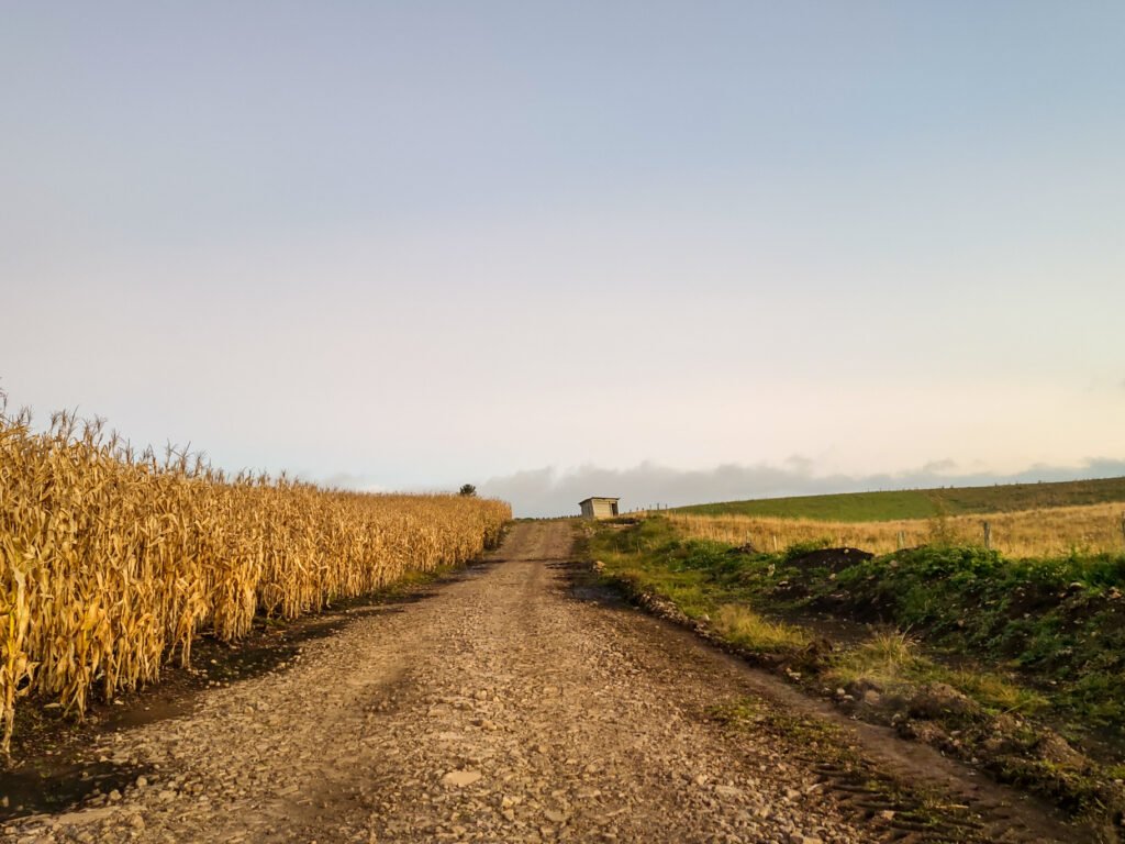 Estradas de chão diminuem o ritmo do olhar e revelam os basaltos da região.
