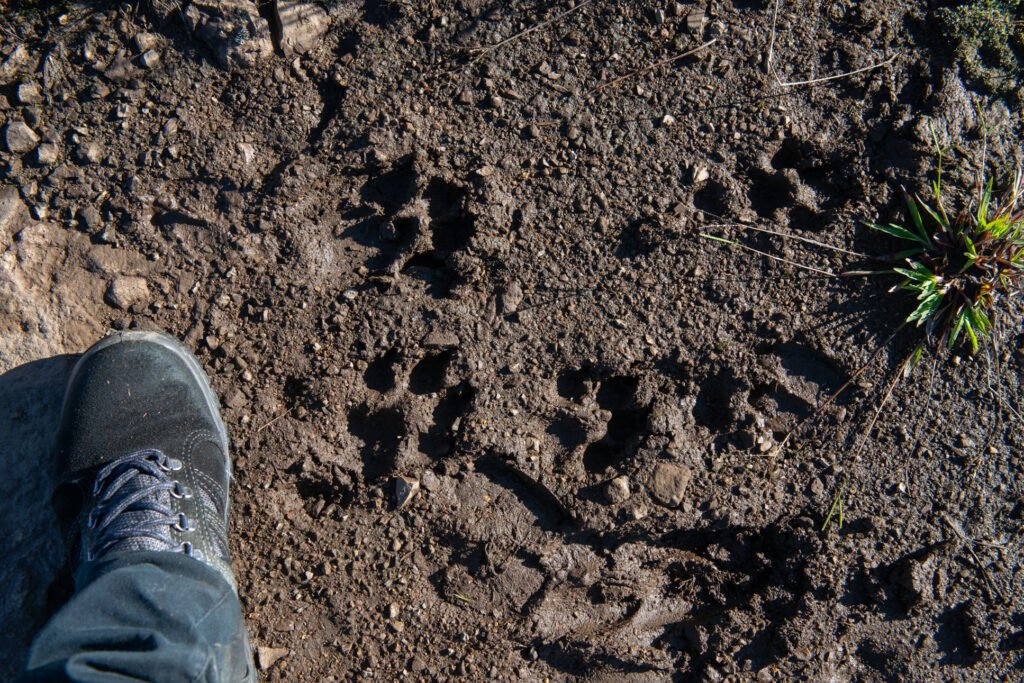 Pegadas de Leão Baio, os pumas das cercanias do vértice do Fortaleza.