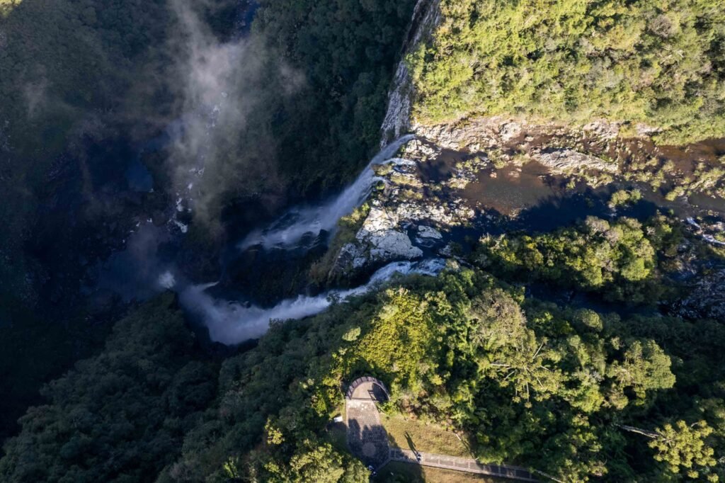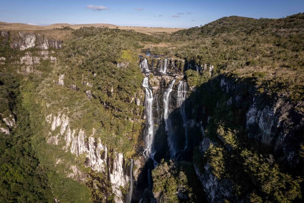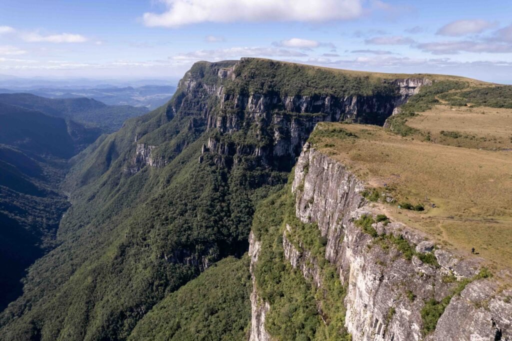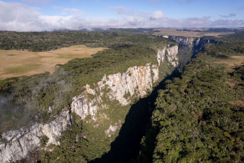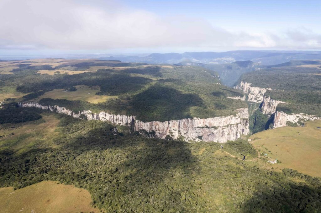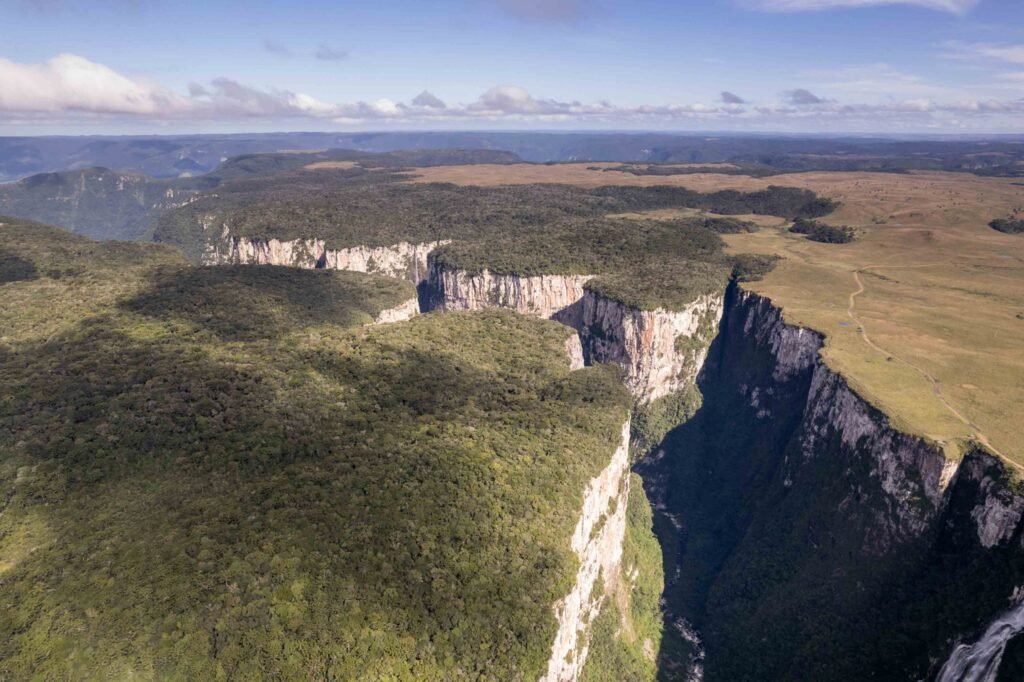 Conjunto de vistas aéreas do cânion do Itaimbezinho, a partir de navegação e registro com drone; e as visões dos peraus e arredores, em diversos ângulos e percursos no Parque Nacional dos Aparados da Serra.