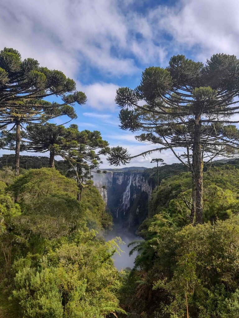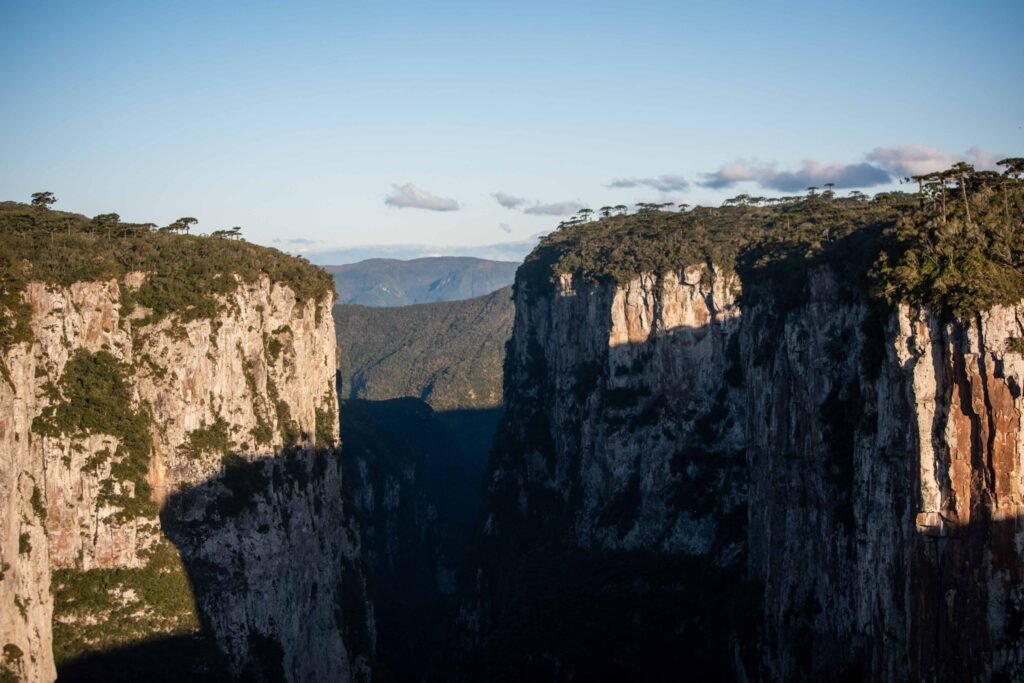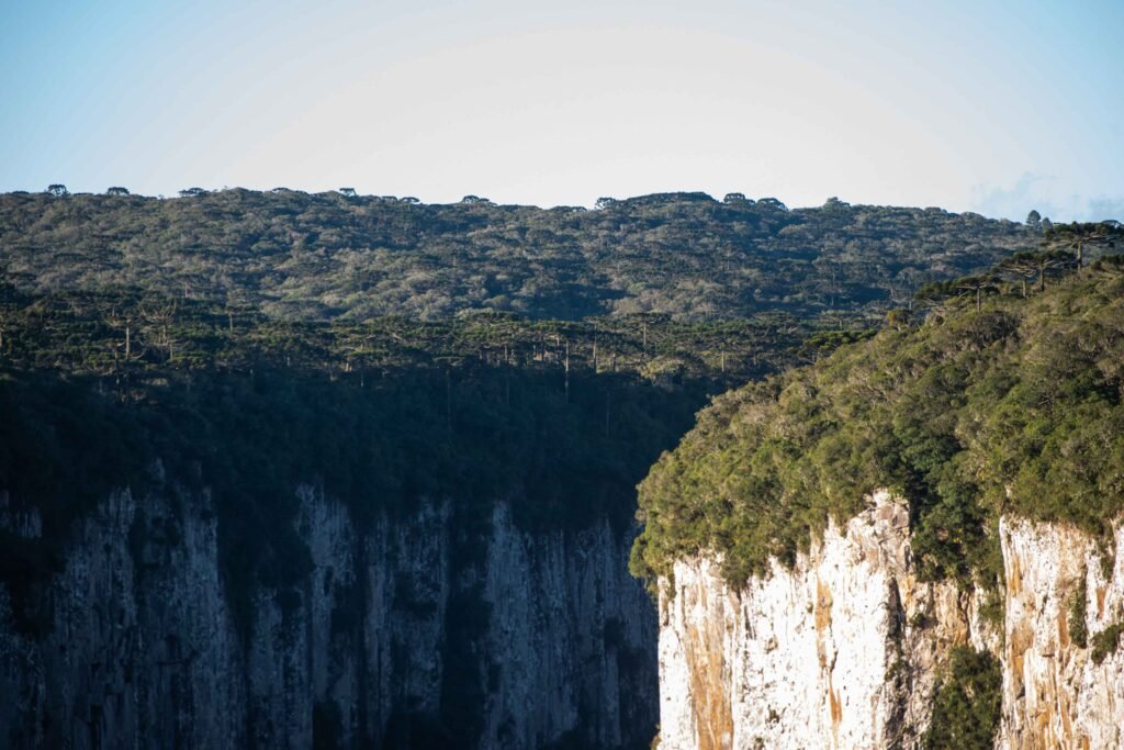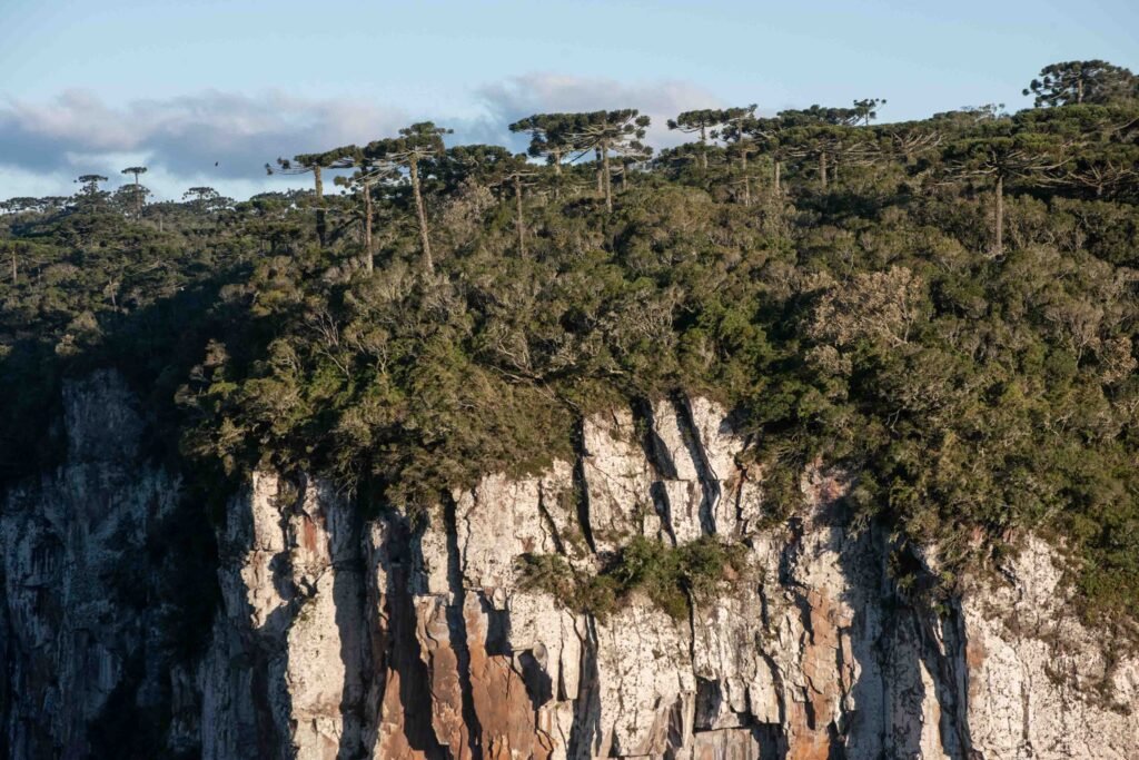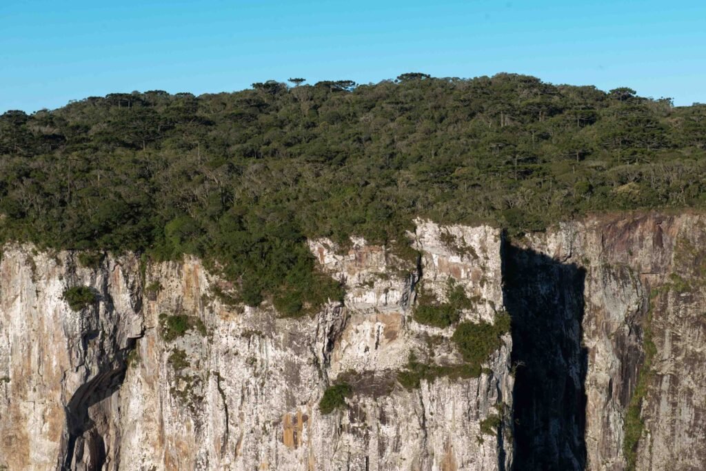 A araucária é Senhora da paisagem, até à beira dos abismos. Abaixo e ao redor delas há florestas e campos. A composição dos Aparados tem vastidões, campo e matas; líquens, flores e sutilezas da flora revelam, ao olhar atento, florestas em miniatura – como observou Carlos Delphim na viagem aos Aparados.